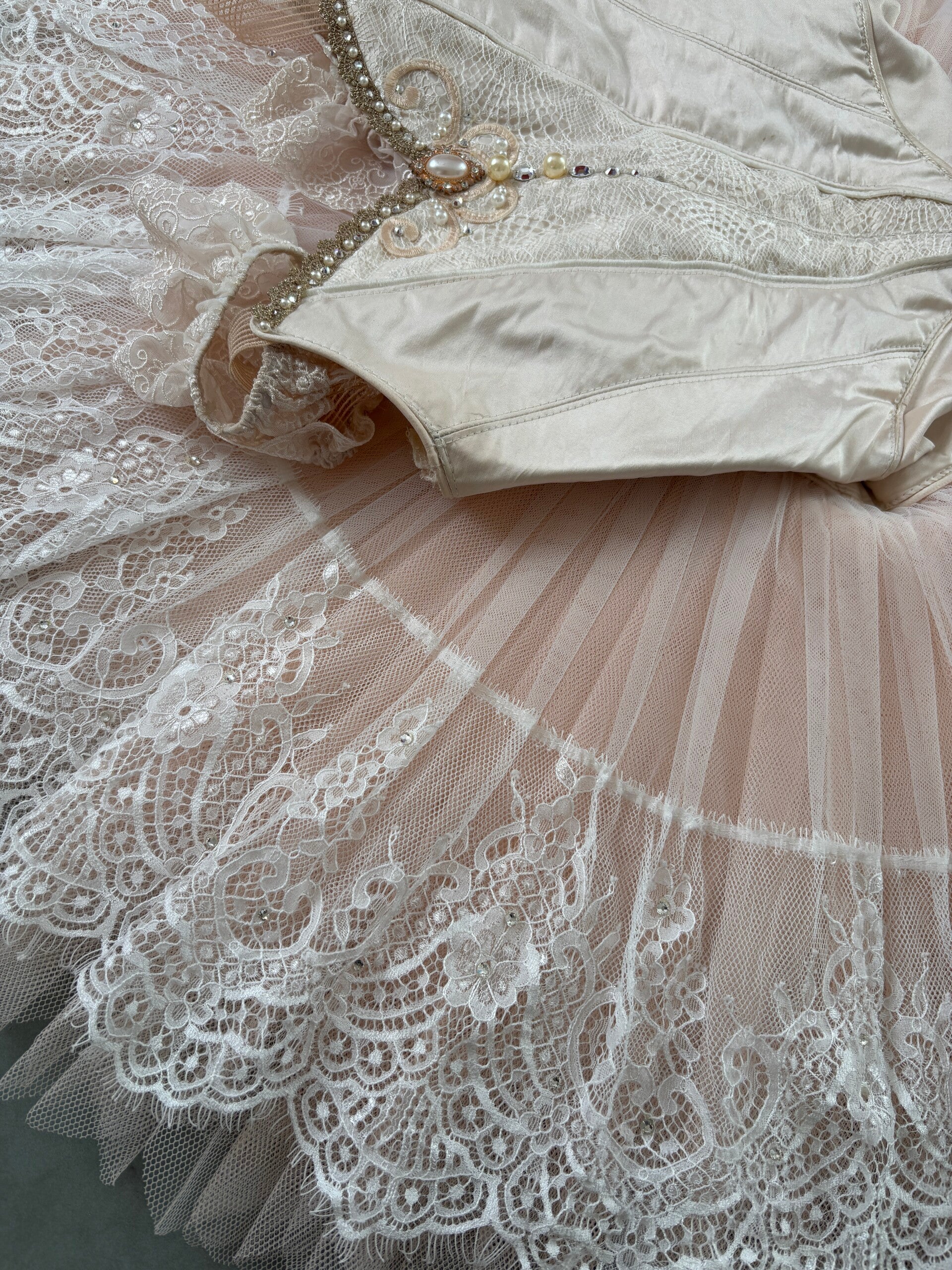 Make a statement with our stunning pearl pink tutu, designed to capture both elegance and charm. Crafted using delicate eyelash lace, this tutu exudes sophistication while offering a soft and delicate texture. This tutu was designed for Aurora Wedding variation however has many classical applications.