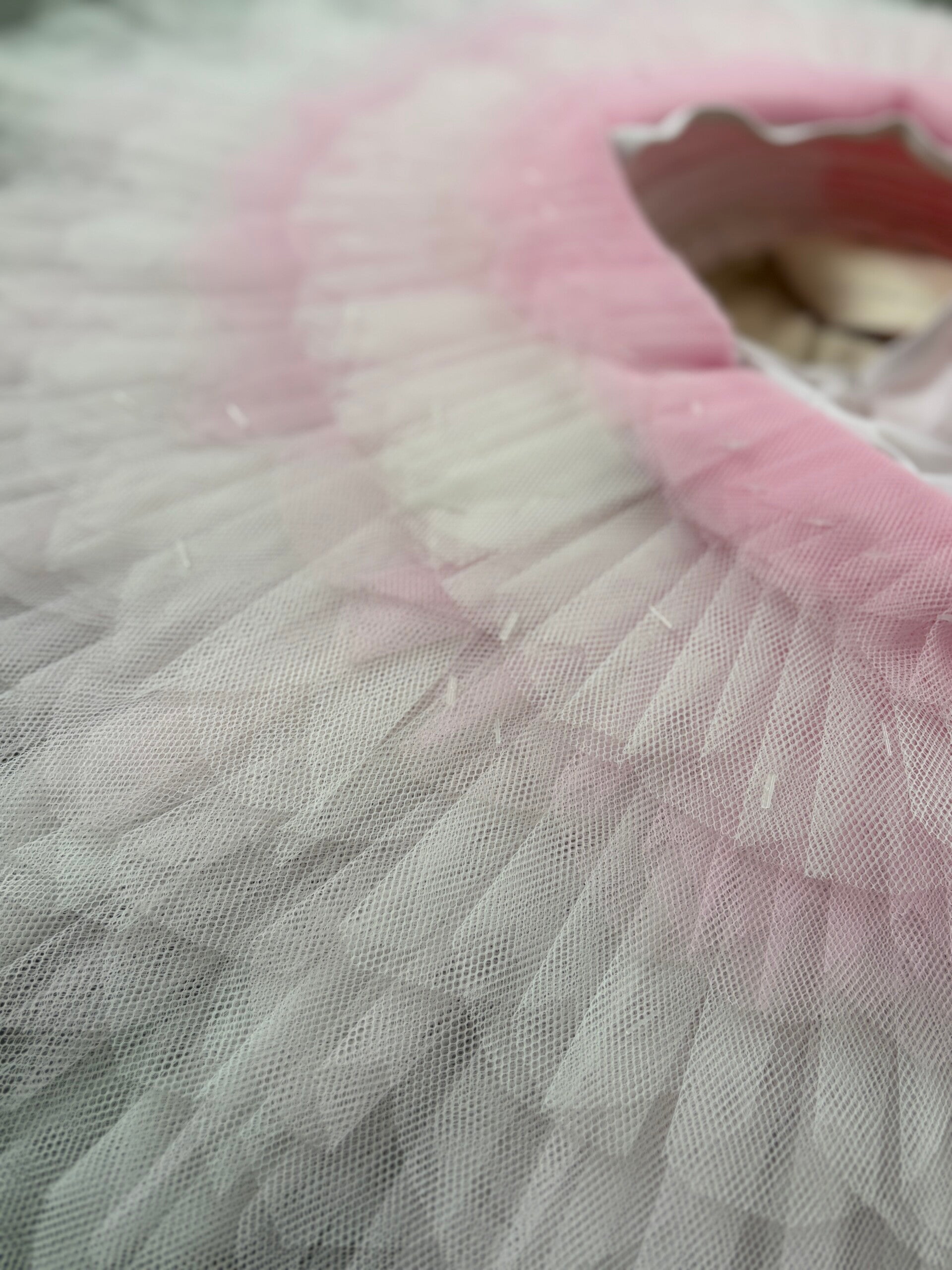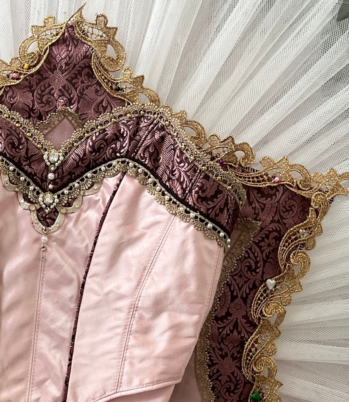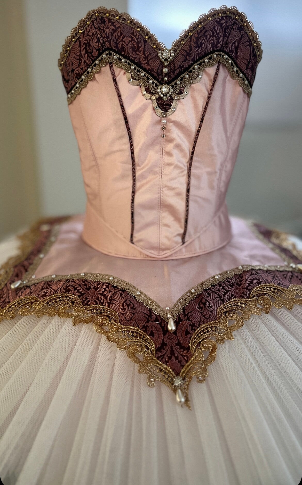 Discover the charm of our pink, brown, and gold tutu, designed to bring a touch of elegance to any occasion. This stunning piece is crafted using luxurious silk fabric that exudes sophistication, while the delicate layers of white net add an ethereal feel, creating a perfect balance of style and grace.